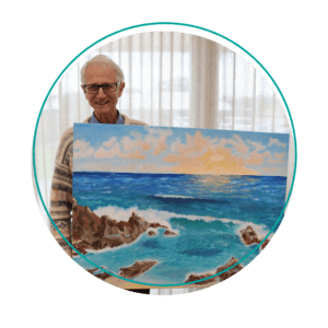 John began to share his passion of painting with others when a neighbor of his was instructed to partake in new activities following a significant operation.